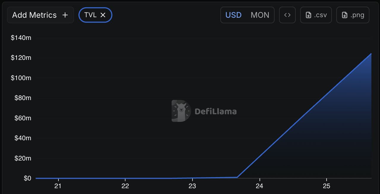 这些指针是通过平行交易运行、用于高效状态管理的客制化数据库 MonadDB,以及将共识与运行分离等创新实现的,这使得节点可以在处理交易之前就区块顺序达成一致。根据 DefiLlama 的数据,截至 2025 年 11 月,Monad 的总锁定价值 (TVL) 超过 1.24 亿美元。