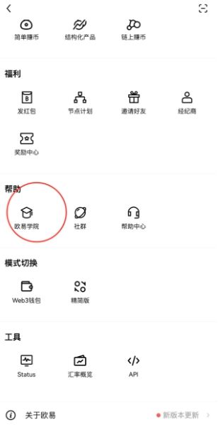 点击首页左上角的九个点,在里面能找到欧易学院,进行深入的学习。