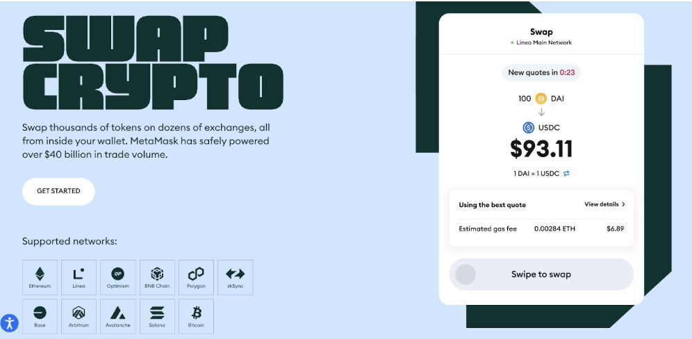 MetaMask 提供了一个内置的交换引擎,可聚合来自多个去中心化交易所的流动性,为用户提供具竞争力的费率。其主要优势包括强大的 Web3 连接性、广泛的 DApp 支持、高端的自订 RPC 功能,以及由全球最大的区块链开发商之一 ConsenSys 支持的强大安全基础。MetaMask 在与 NFT 市场、DeFi 协议、桥接平台和测试网环境交互的用户中特别受欢迎。