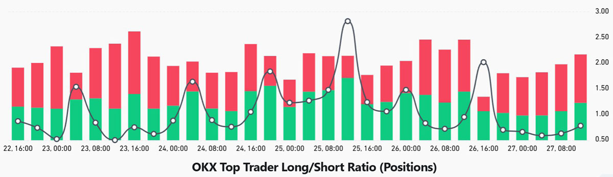 OKX顶级交易员的多空比率。来源:CoinGlass