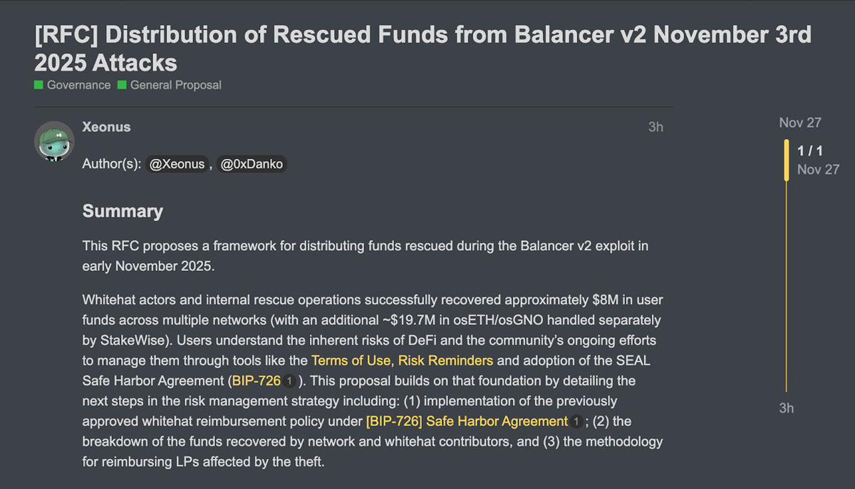 Balancer 社区提议了一项从黑客攻击中恢复资金的分配计划