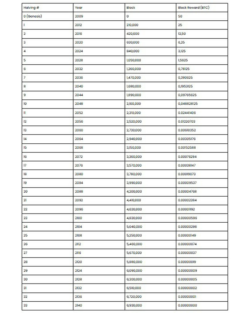 由于每次减半降低奖励但挖矿仍维持约每 10 分钟一个区块的速度,比特币供给将以涓流速度缓慢释放,直至触及 2100 万枚上限,因此时间线将延续至 2140 年。