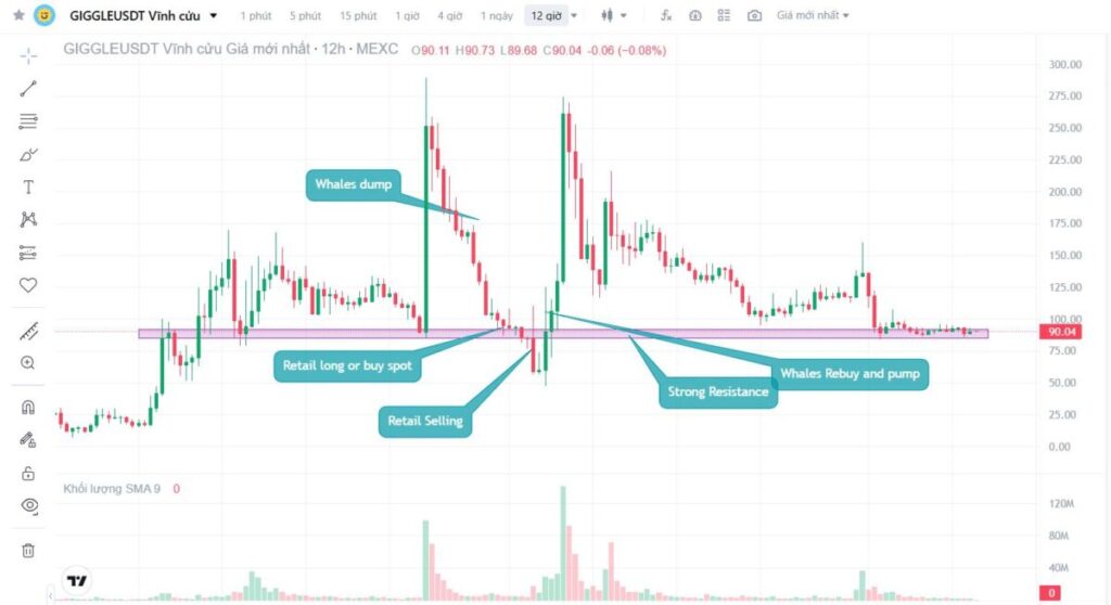 假设$GIGGLE在85-90美元附近有强劲支撑。大多数散户交易者会将止损位设在略低于该支撑位的位置,大约在80-85美元附近。而大户交易者对此心知肚明。