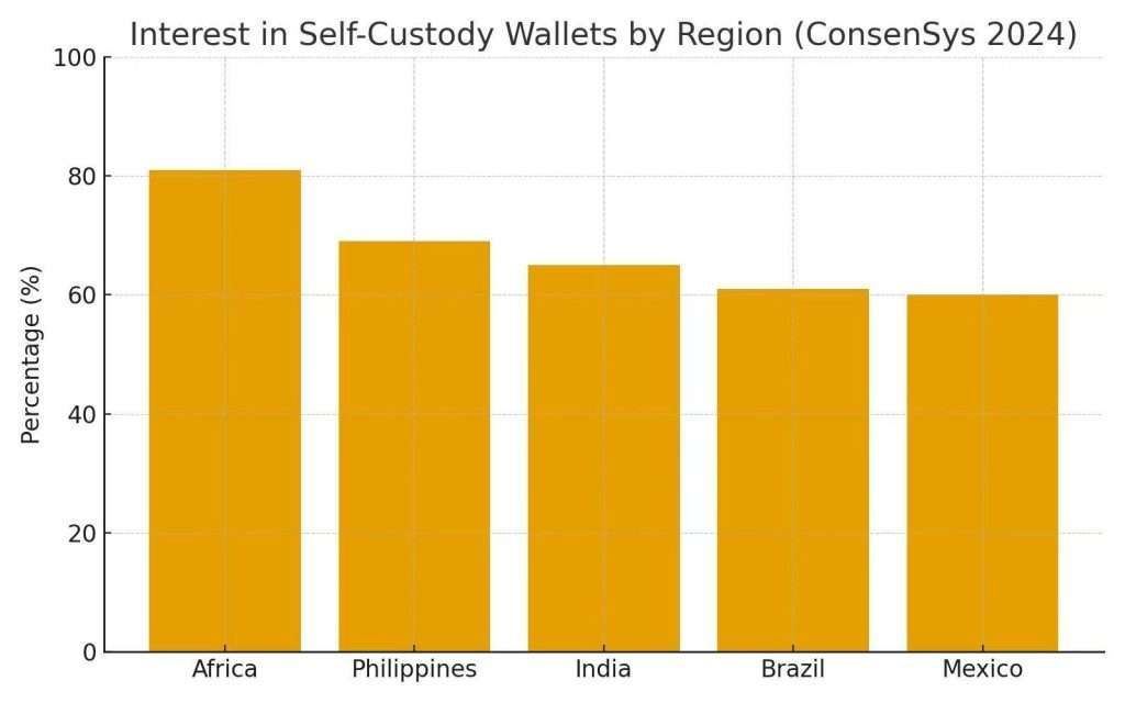 根据 ConsenSys 全球 Web3 用户研究(2024 年),用户对自托管钱包的兴趣在以下人群中最高: