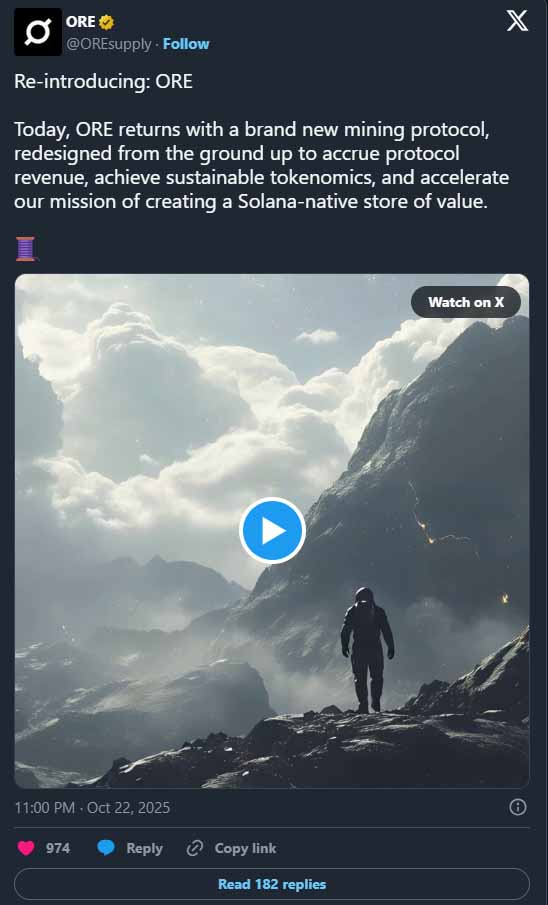 ORE 目前的版本与其最初形式截然不同。该项目于 2024 年推出时,采用了受比特币工作量证明(Proof-of-Work)系统启发的不同挖矿机制。那次最初的迭代汲取了加密挖矿精神的灵感,但在运行上遇到了严重问题。短线 投机者蜂拥而至,导致 Solana 网络壅塞。矿工提取价值却未对协议的长期健康做出贡献。团队将此问题称为「价值泄漏」。