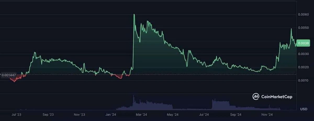 - 最低价 0.0015 美元:即使在市场回调期间,底部依然坚挺。