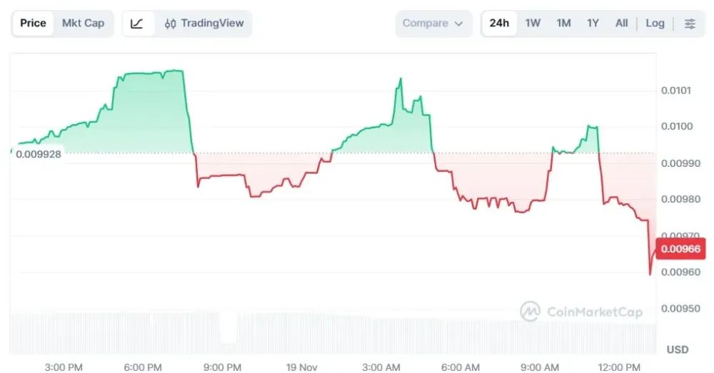 正在经历一段波动期。该代币目前的交易价格约为 $0.00966,在最近一个交易时段中显示出下降。