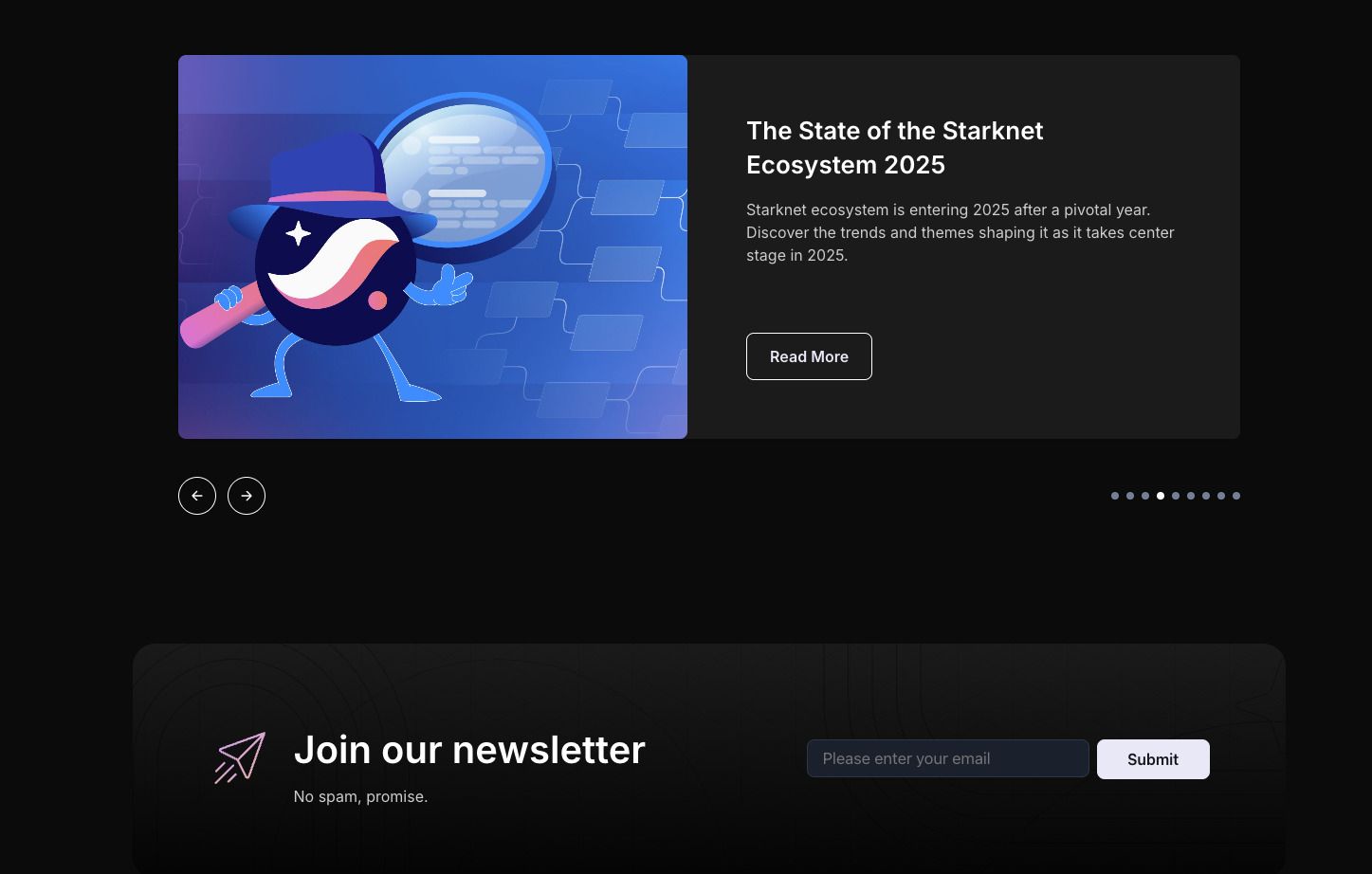 - 通过转译器和工具实现高可组合性和 EVM 互操作性,连接 Cairo 和 Solidity 生态系统。