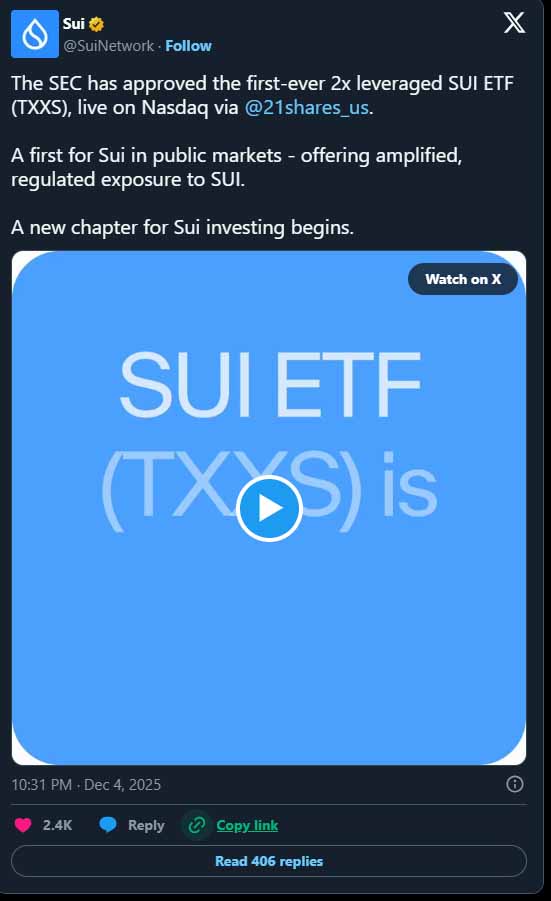 一位彭博社资深 ETF 分析师指出了这次发布的不寻常之处:首个追踪特定加密资产的 ETF 竟然是杠杆产品,这很罕见。大多数数字资产通常先推出如现货 ETF,待市场成熟且流动性加深后,才会有杠杆版本跟进。21Shares 选择率先推出 SUI 杠杆产品,这反映了其对交易者需求的强烈信心,或者是其在当前监管环境下的战略定位。