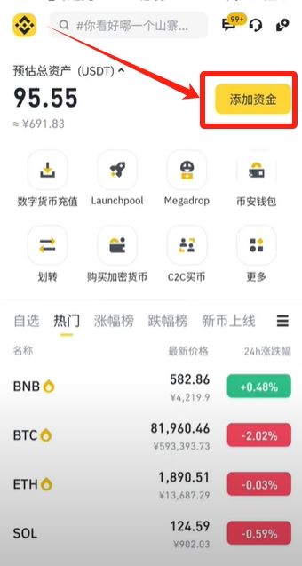 现在我们的USDT就在我们的资金账户里面了,我们就可以去进行提现了。我们回到首页,点击这里的【添加资金】。