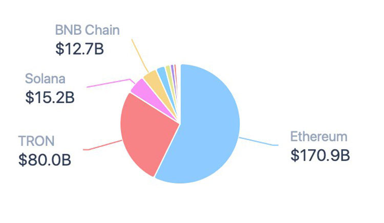 以太坊在稳定币发行量上也居于领先地位,该网络上已发行的稳定币规模约达1700亿美元,进一步巩固了其作为链上美元计价活动主要结算层的地位。
