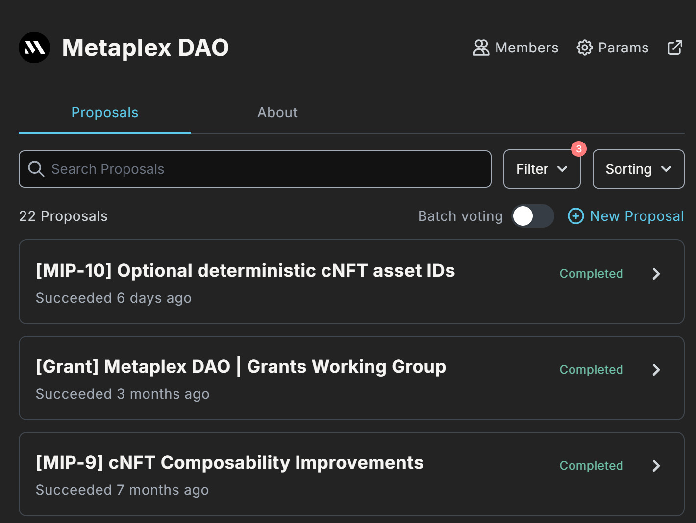 Metaplex DAO 是负责开发和引导 Metaplex 协议的治理机构。它通过提案系统运作,社区成员可以提交、讨论和投票决定治理事项。DAO 的结构确保了去中心化,允许利益相关者在保持透明度和问责制的同时,影响 Metaplex 的未来。成员通过积极参与 DAO,贡献协议升级、新功能以及社区驱动的倡议,确保 Metaplex 生态系统始终与用户需求保持同步。