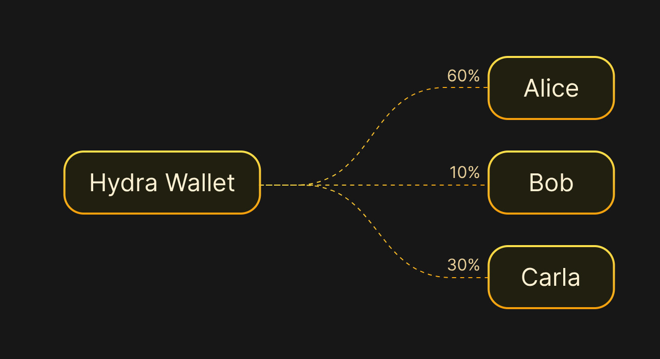 Hydra 促进了共享钱包的功能,按照预定义的份额在多个利益相关者之间分配资金。它支持 SOL 和 SPL 代币,使资金分配更加公平,尤其对 DAO 和协作项目具有重要价值。Hydra 提供了三种会员模型——钱包、NFT 和代币——可以根据钱包所有权、质押代币或 NFT 持有量进行分配。Hydra 的链上跟踪确保了透明性,使团队和社区能够高效地管理共享资金。