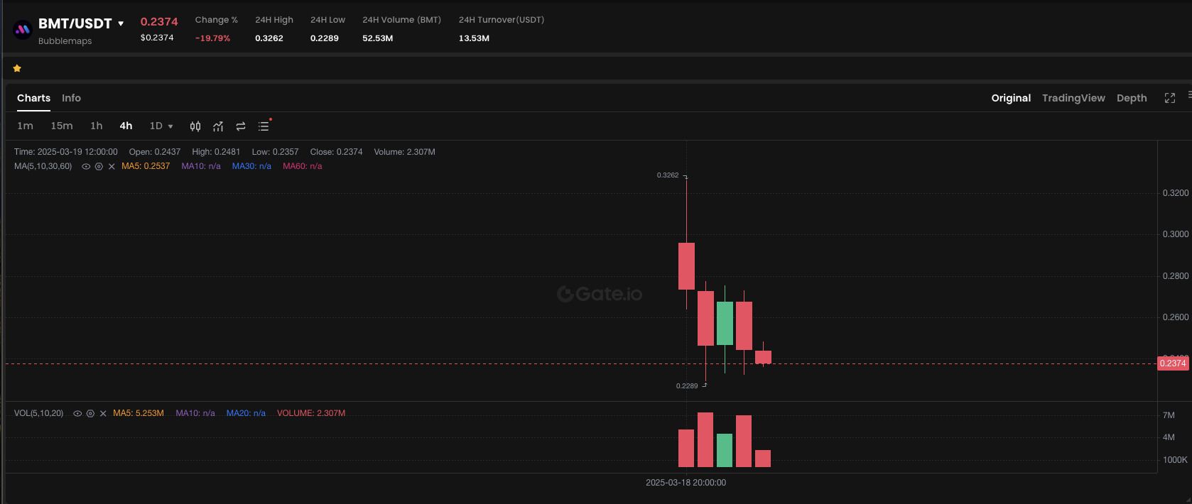 目前BMT已经上线Gate.com现货平台,目前价格0.23美元左右(2025年3月19日)