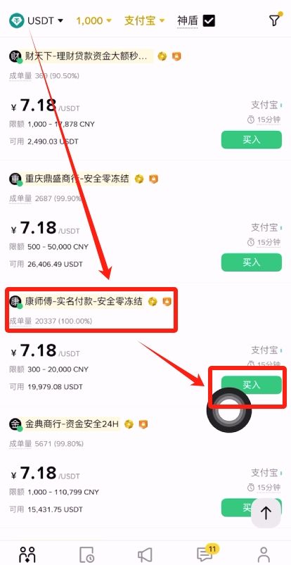 在下方选择【股买】,要购买的币种就是这个USDT了。你可以筛选一下金额,比如说500人民币。后面你还可以选择一下支付方式,推荐大家使用“支付宝”来支付。