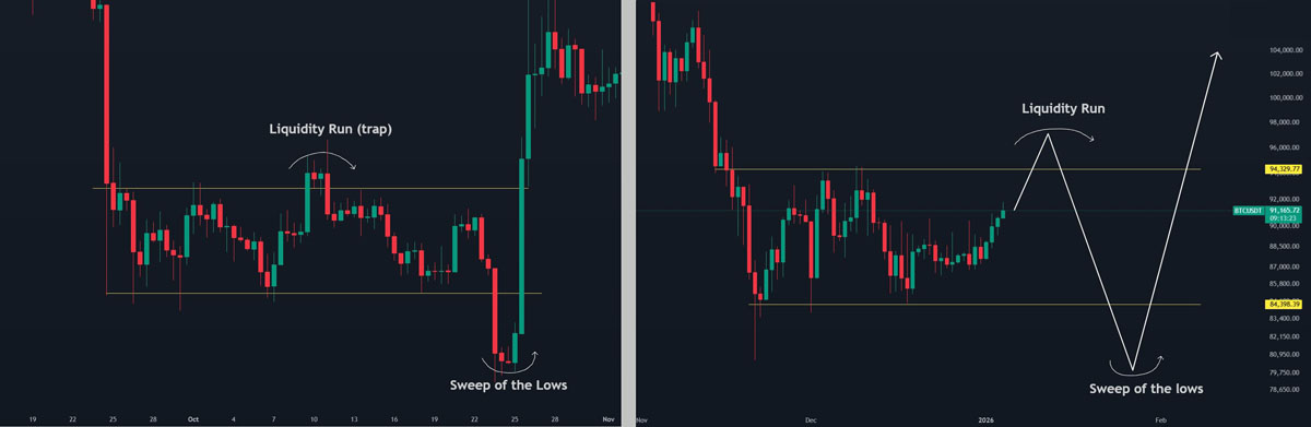 “结构完全相同,价格在触及低点前进行了流动性拉升,随后便大幅上涨,”他继续说道。