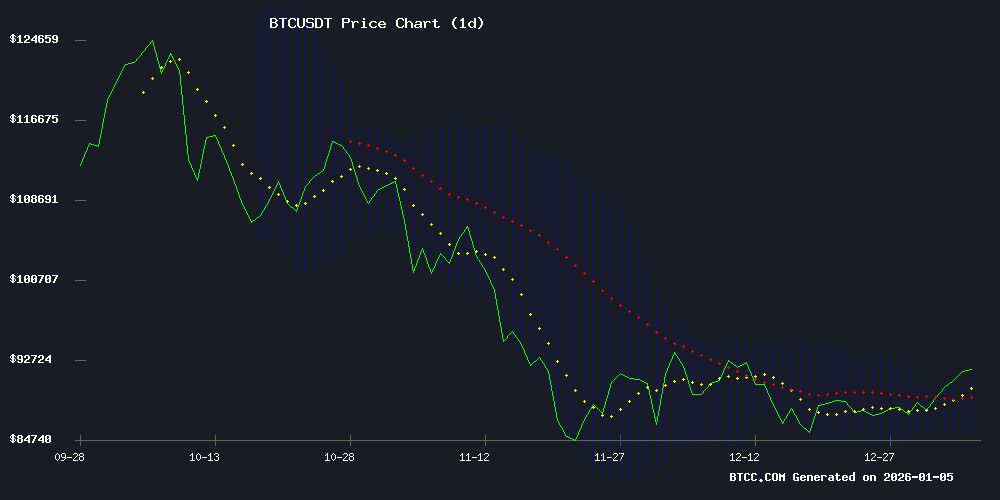 技术分析:价格需要突破布尔带上轨阻力位(约 92,300 美元),并且 MACD 指标出现积极反转,才能确认新的持续上涨势头。