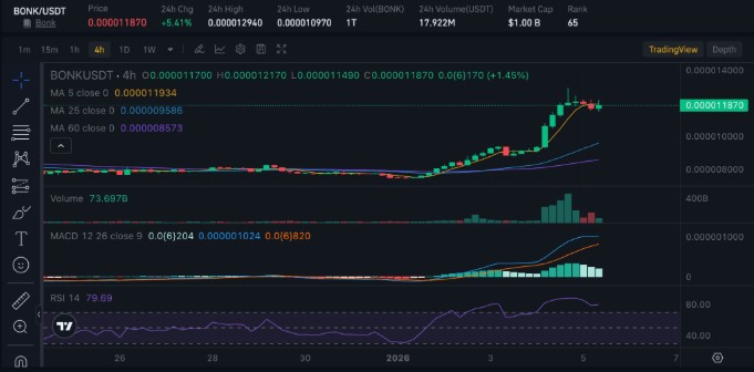 随着Solana持续扩展并吸引开发者和用户,Bonk从这一增长叙事中深度融入中获益。在山寨币反弹期间,BONK通常作为Solana情绪的高贝塔代理。