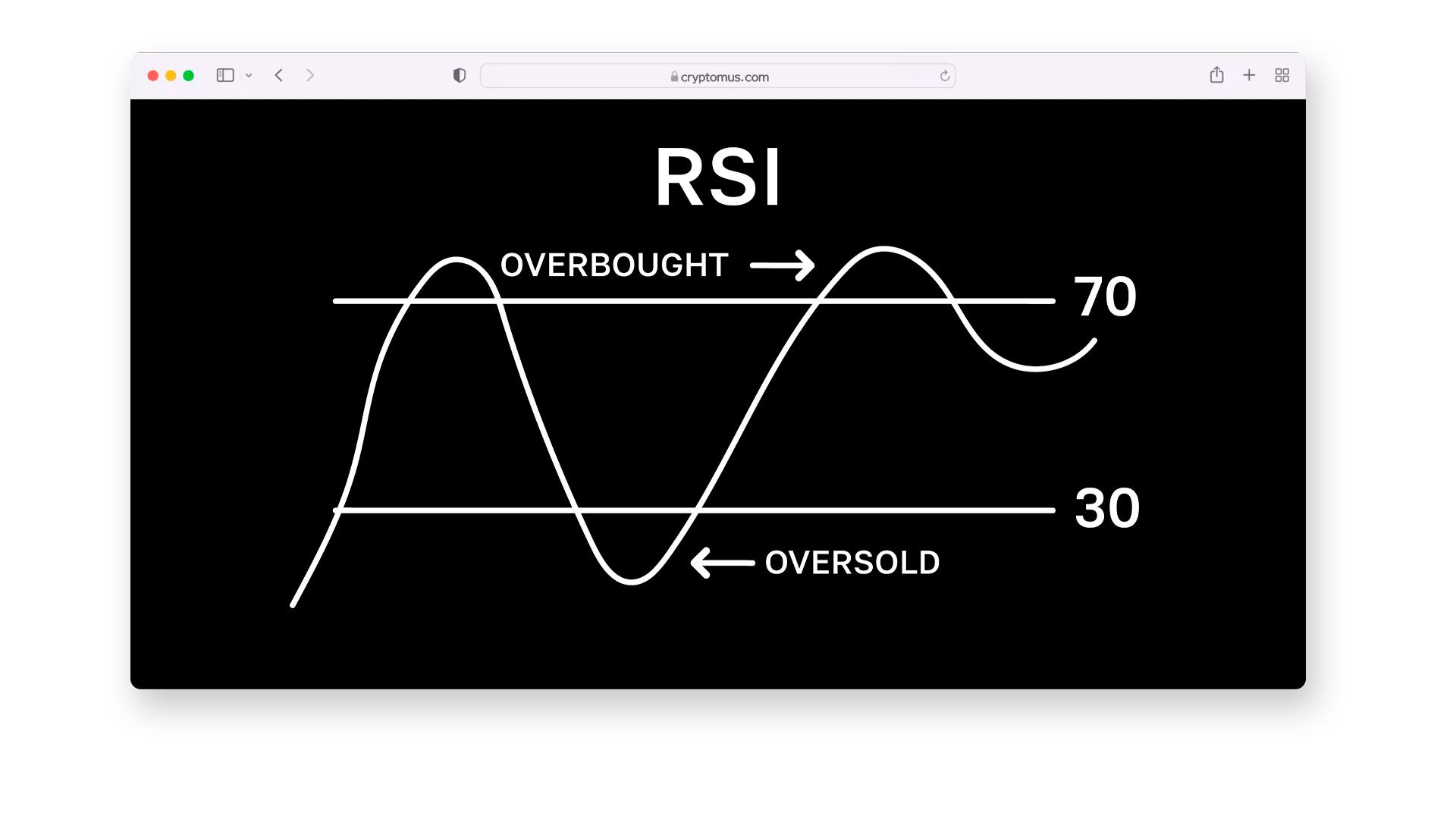 如果RSI高于70,则加密货币可能被过度购买,暗示价格可能会下跌。通常这被视为卖出的信号,尤其是在强势上涨时。