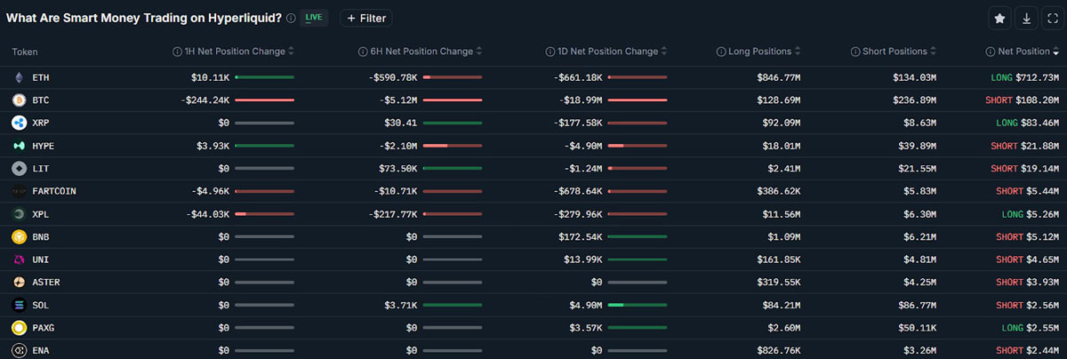 聪明的资金交易者在Hyperliquid上的永久期货头寸最高。来源:南森