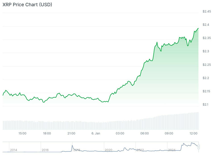 以太坊,与此同时,比特币创下逾3200美元的日内高点,为超过三周以来的最高价,而XRP当日大涨近12%,至2.39美元,创11月中旬以来新高。