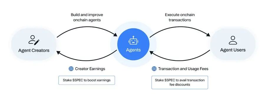 Syntax网络使用双层激励系统。用户支付交易和使用费用来与代理交互,而创建者根据代理的性能获得这些费用的一部分。质押$SPEC提供了额外的好处: