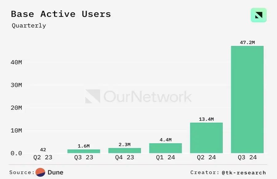 - Coinbase的Layer 2网络Base正在迅速增长,TVL超过30亿美元,高交易量占据了Layer 2活动的主要部分。这种强劲的采用为Spectral创造了理想的环境,增加了用户参与度,降低了成本,并在一个活跃、繁荣的网络中扩大了可见性。