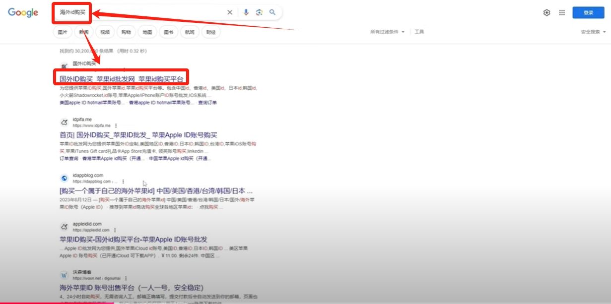 我们可以打开谷歌,记得一定要打开谷歌,不要百度,百度是找不到的。搜索一下“台湾ID购买”,或者是“海外ID购买”都是可以。价格也是很便宜,基本上几块钱一个,大家可以筛选一下,这里就不再给大家演示了。