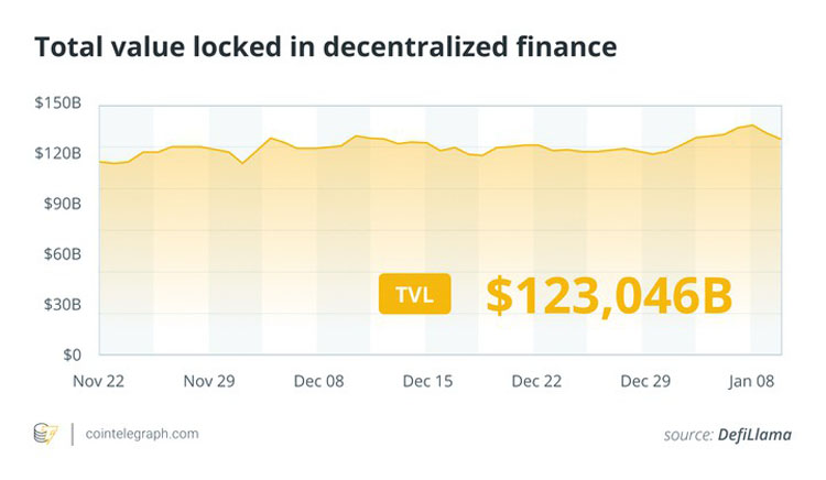 在DeFi中锁定的总价值。来源:DefiLlama