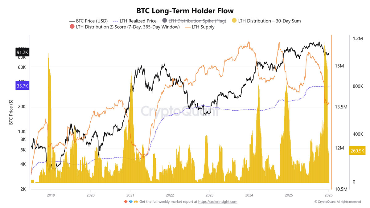 长期持有比特币的投资者在2025年出售了价值近3000亿美元的BTC,但随着抛售压力减弱,2026年的看涨前景已浮出水面。