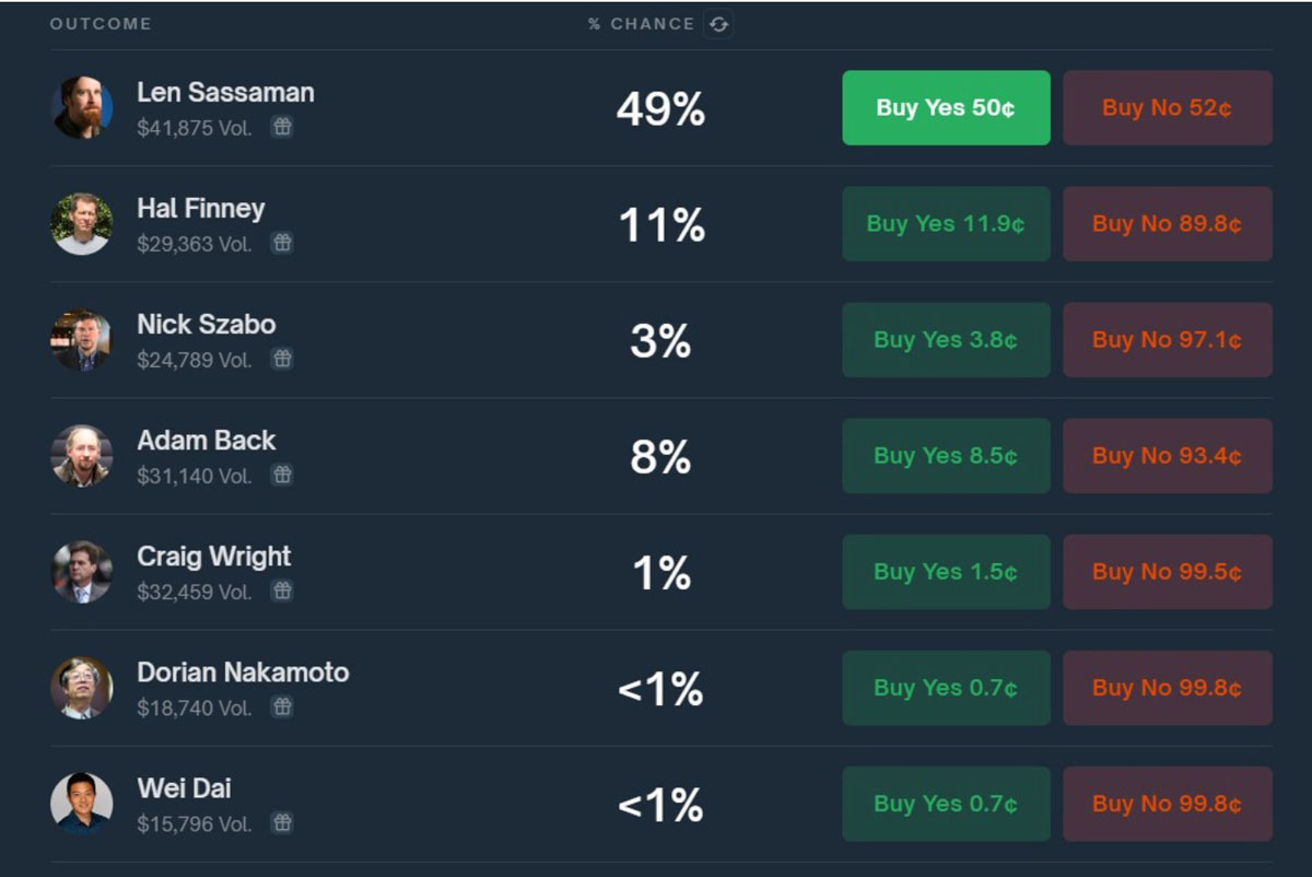 HBO会选谁来演中本聪。来源:Polymarket