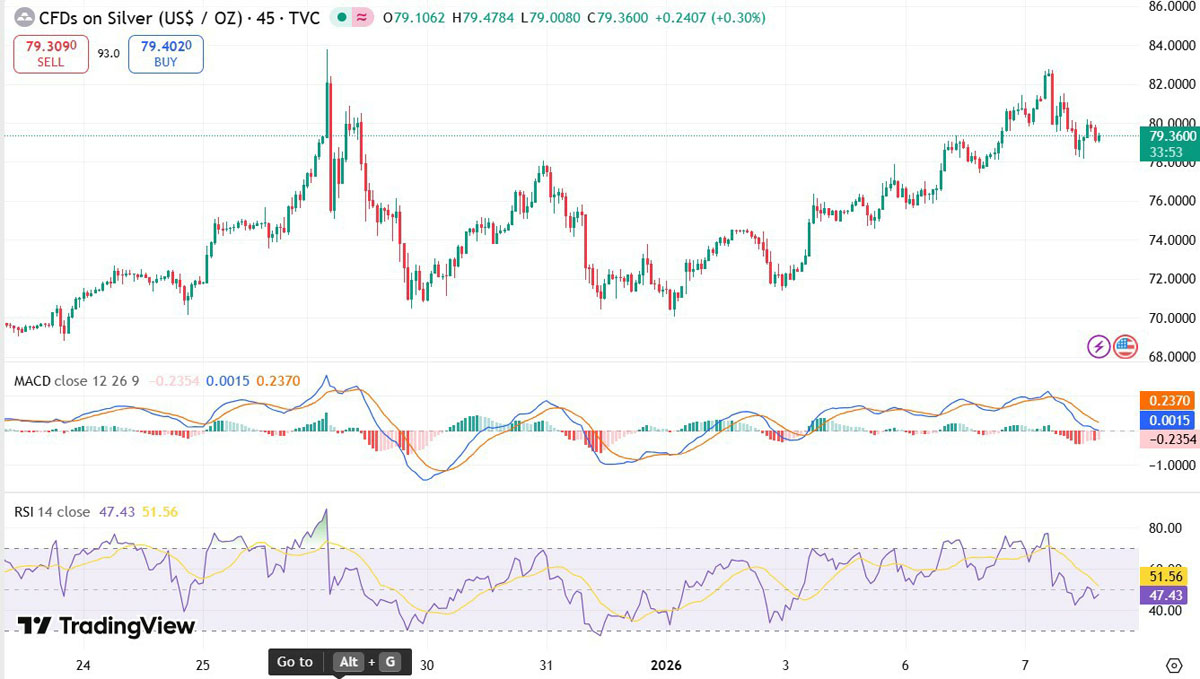 - 白银价格崩溃目前正呈横盘走势,接近79美元。如果跌破78.5美元,价格可能会测试76美元水平,但如果突破阻力区,价格可能会瞄准83-85美元的目标。