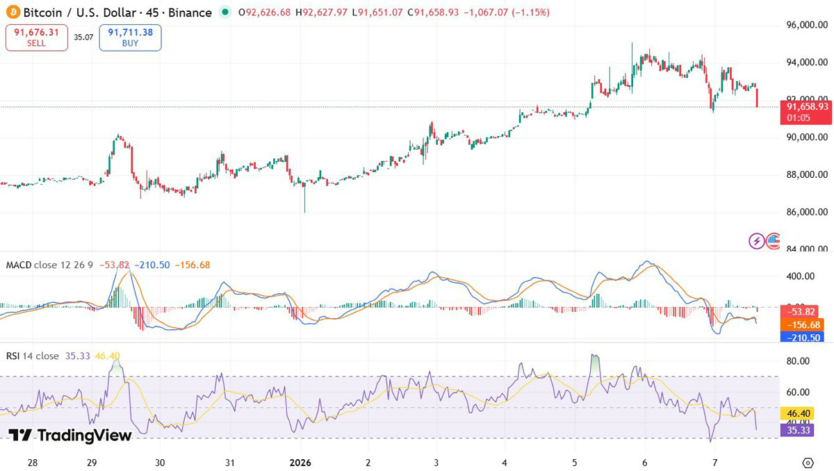 2. 从技术角度来看比特币价格预测短期内看起来疲软但并未破裂。只要它保持在 90500 美元的安全水平之上,这一波动看起来就像一个正常的回调。
