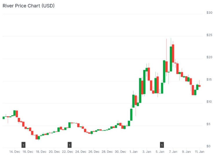 RIVER 最近显示出强劲的价格波动,反映出市场增加的关注。在过去一个月中,该代币经历了显著的上涨,随后进入整固期。