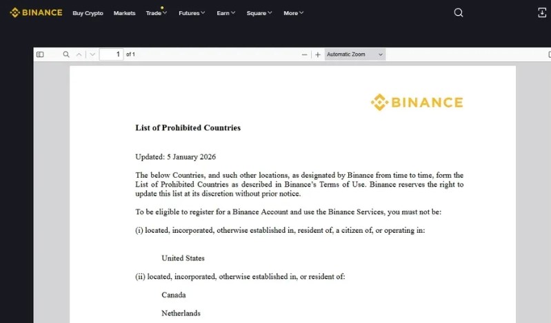 币安目前在美国和加拿大等主要市场实施严格的地域限制,以确保符合2026年全球监管标准。