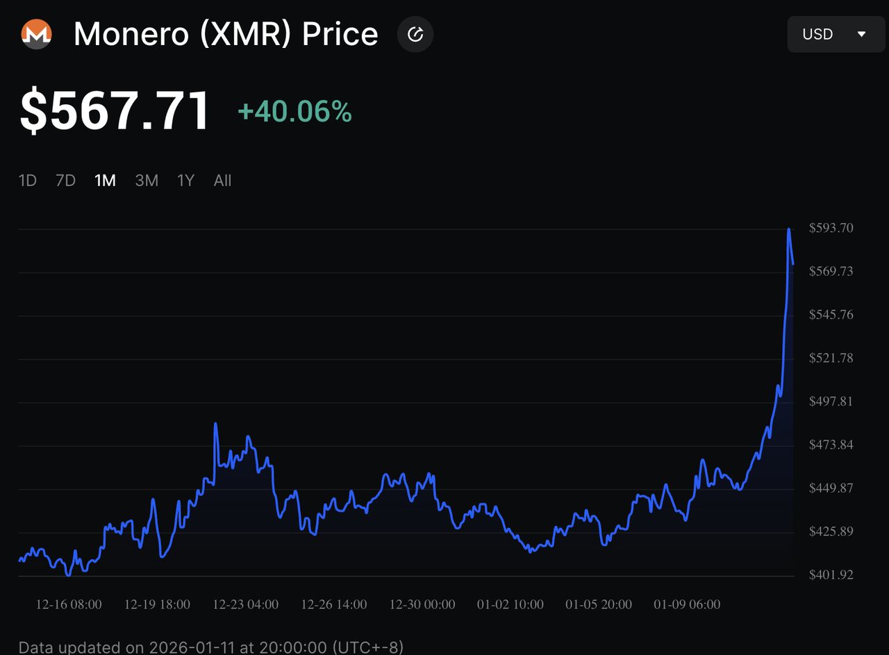 2026 年1 月门罗币单周飙升40% 的原因是什么?