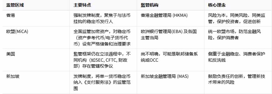 放眼全球,各地区都在积极探索对稳定币的监管之道。例如,欧盟推出了《加密资产市场法案》(MiCA),美国则在国会层面反复辩论相关法案。相较之下,香港的监管框架展现出了其独特的智能和前瞻性。