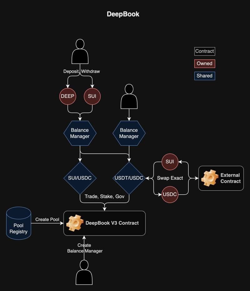 DeepBook 作为 Sui 的原生流动性层,利用 CLOB 技术优化交易。Sui 的共享对象池结构有助于减少拥堵并提高高吞吐量的处理能力。