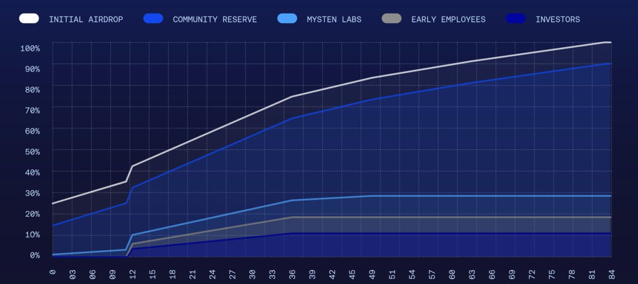 25% 的总供应量将在初始时解锁。这些代币将在 7 年内逐步发行。