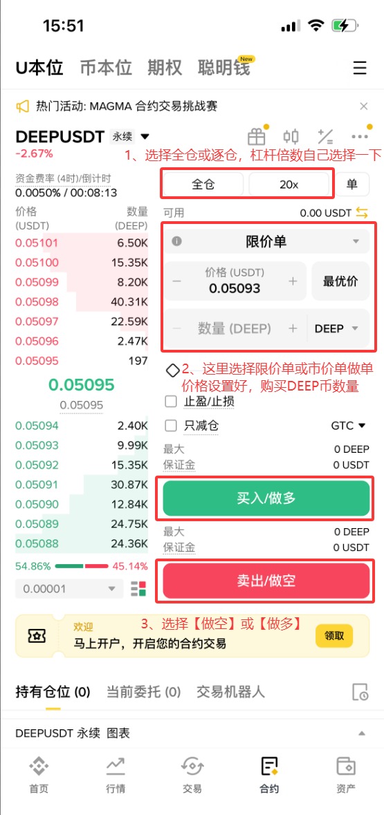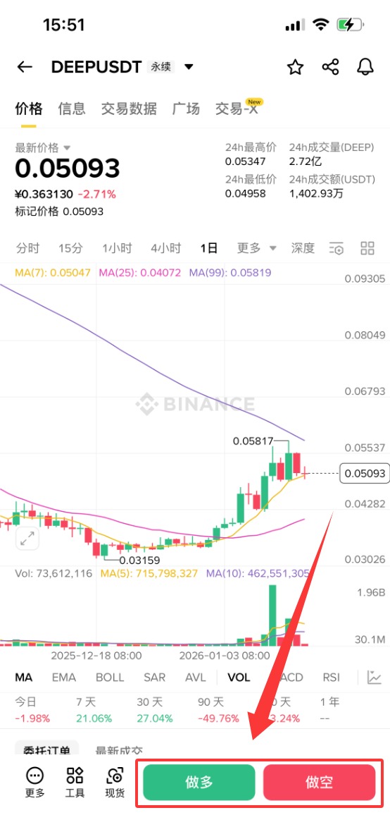 币安提供DEEP永续合约交易对,DEEPUSDT合约杠杆为1-50。