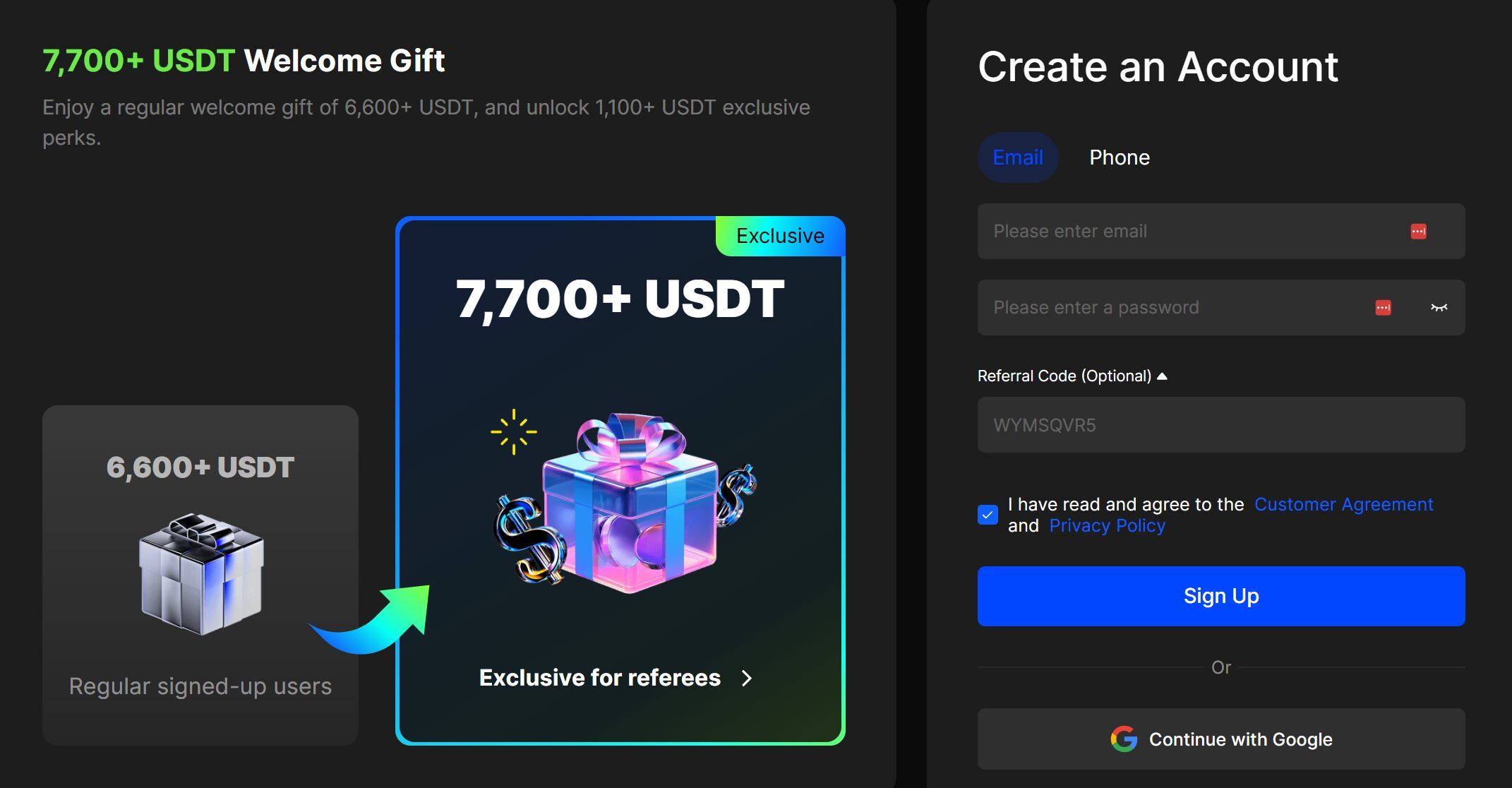 从本站链接注册,享受官网直接注册所没有的手续费自动返还和新人礼包,参考交易所返佣服务。