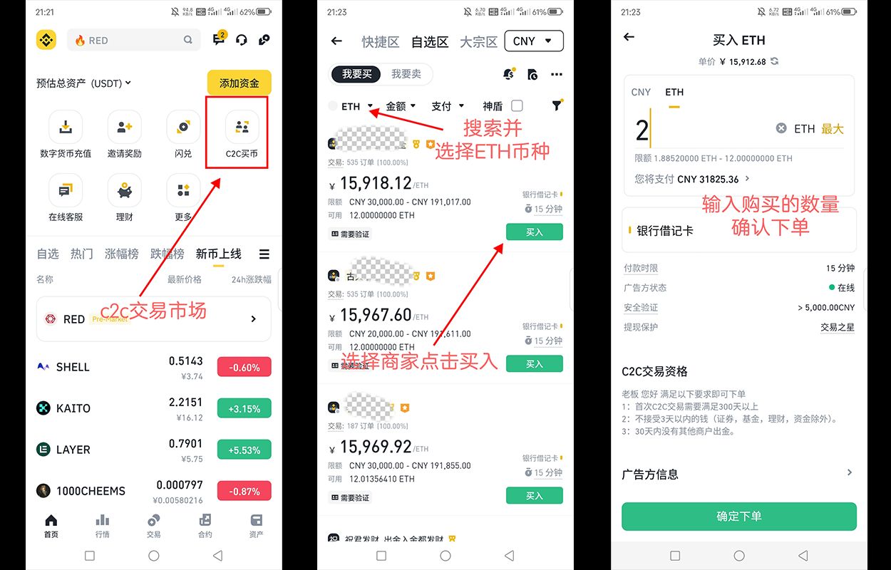 2、通过c2c购买ETH