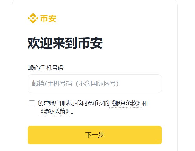 2、进入创建个人账户页面后,输入手机号/邮箱,勾选“我同意币安的服务条款”,点击下一步:手机号选择对应的区号,中国号码选择“+86”区号,也可以使用国内的163邮箱,QQ邮箱和outlook,gmail等国外邮箱。