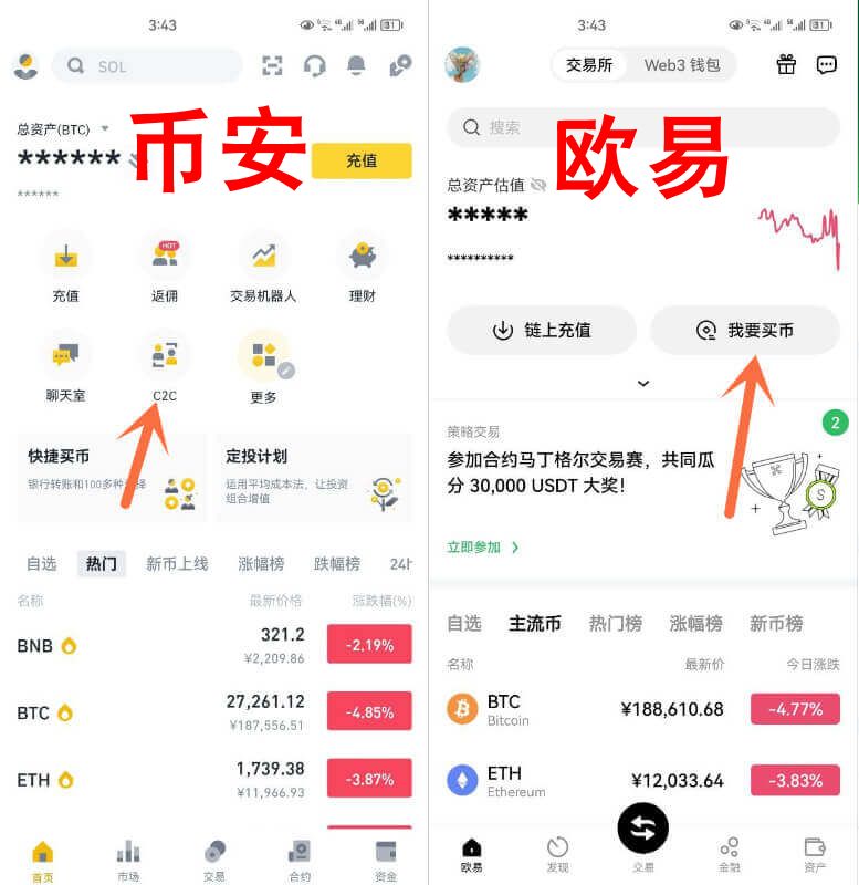 因为各交易所App的用户界面经常更新,上方的描述可能不准确,但是只要搞懂了C2C交易的含义,相信都可以轻松找到C2C入口。