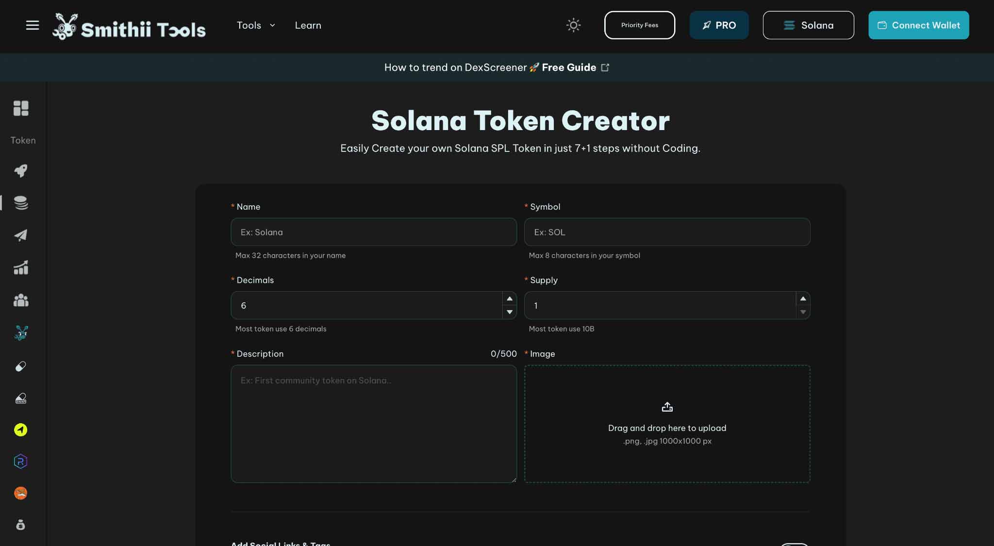 使用像 Smithii 的 Solana 代币创建器这样的工具: