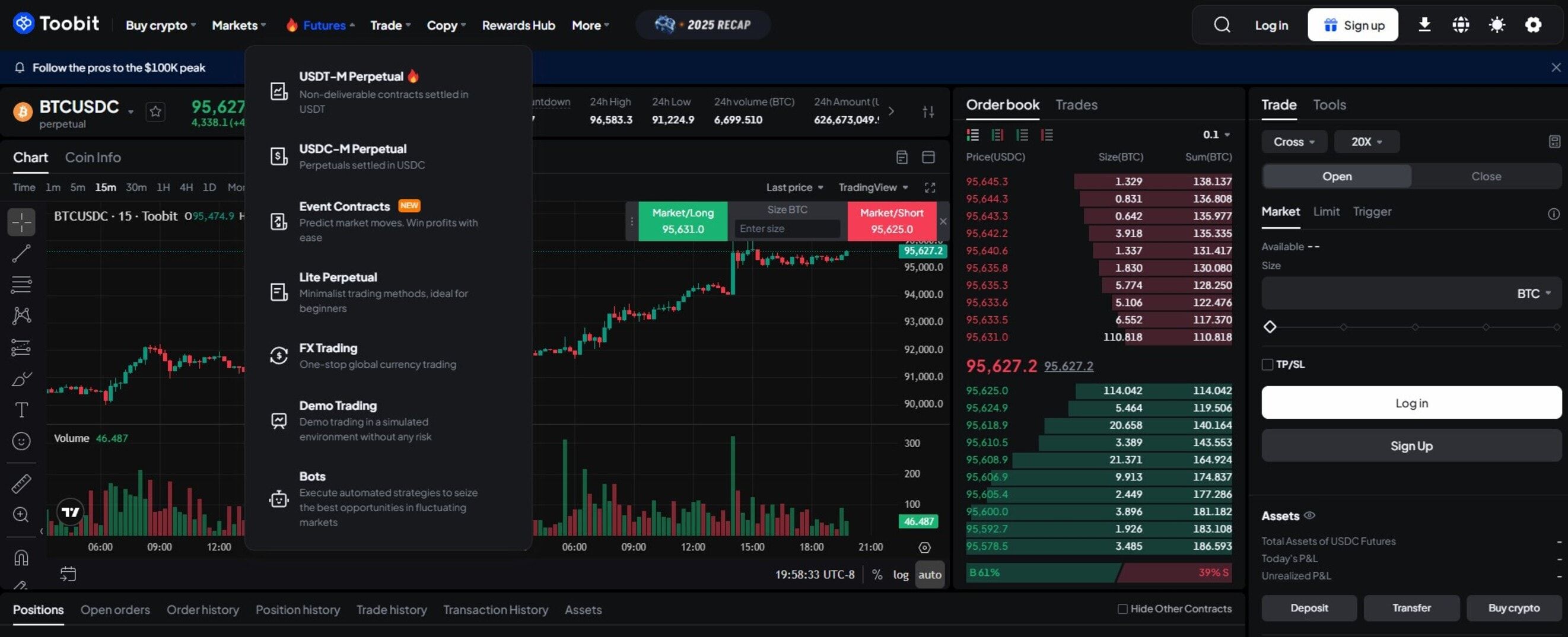 - Toobit专注于期货和活跃交易:该平台非常适合频繁进行市场交易的交易者。它提供杠杆期货合约、高级订单类型以及支持短期策略的工具,因此对经验丰富的用户极具吸引力。