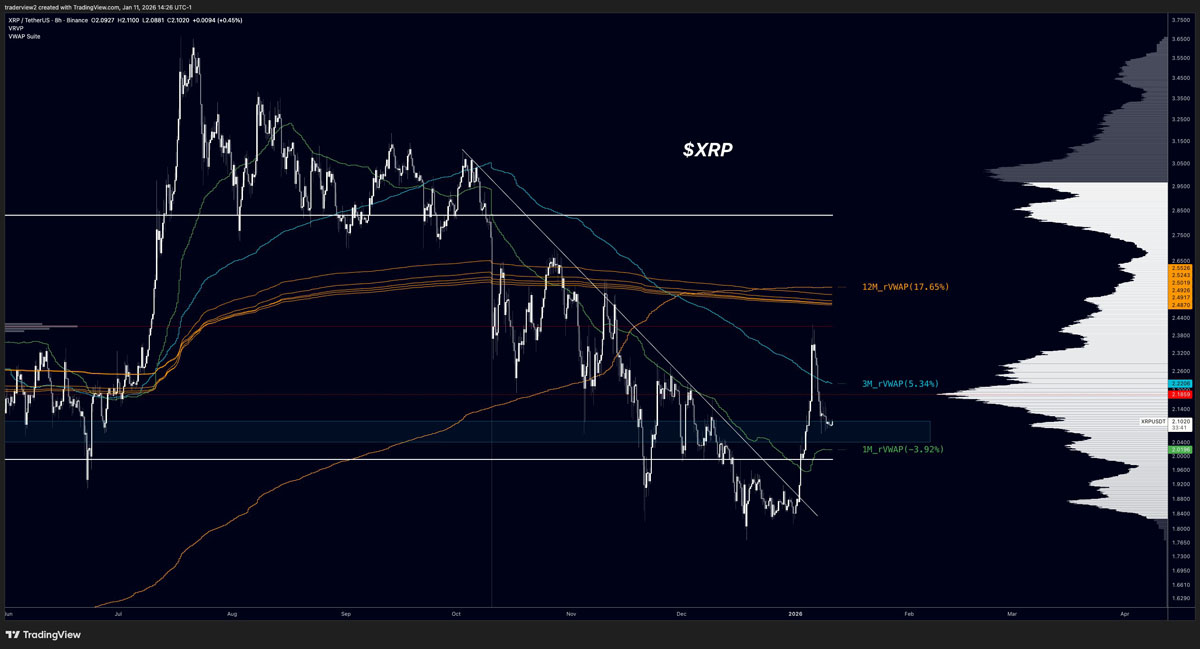 2026年伊始,XRP在1月第一个周末重新夺回了位于其50日简单移动平均线(SMA)之上的看涨位置。这一走势与经典的下跌趋势回调相吻合,一些技术分析师认为,如果买方继续保持控制,这种结构往往预示着价格将走高。然而,迄今为止的价格走势表明的是企稳,而非加速。