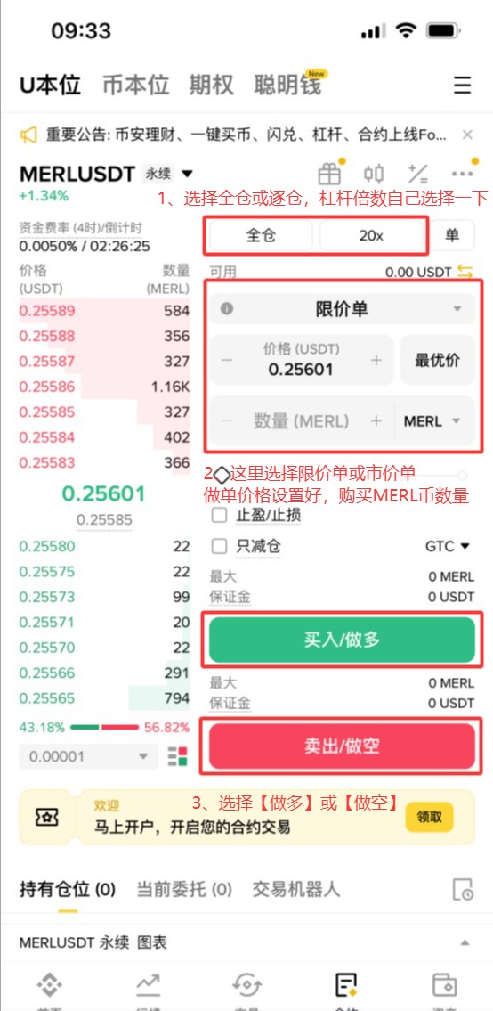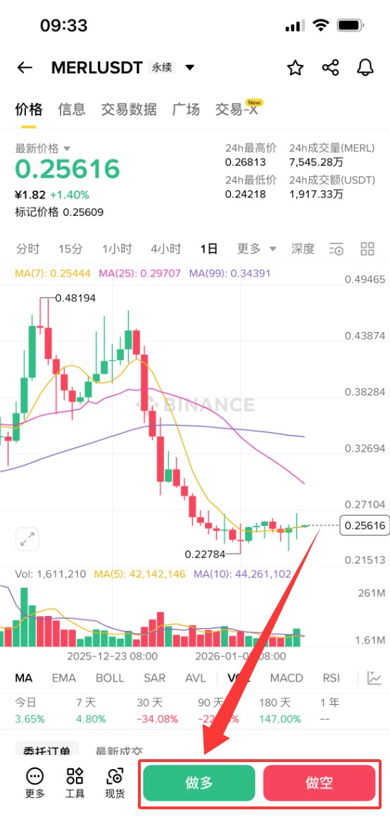 相比于现货,交易者在合约平台上交易MERL 能获得更多收益。因为您只需要推测$MERL 的涨跌,便可利用杠杆以更低的成本获得更高的收益。
