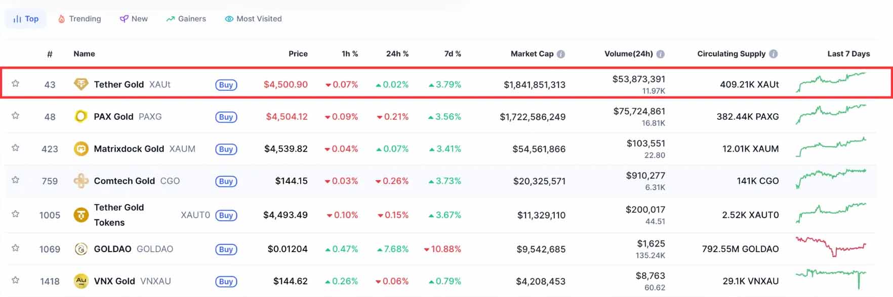目前市面上有许多代币化黄金产品。