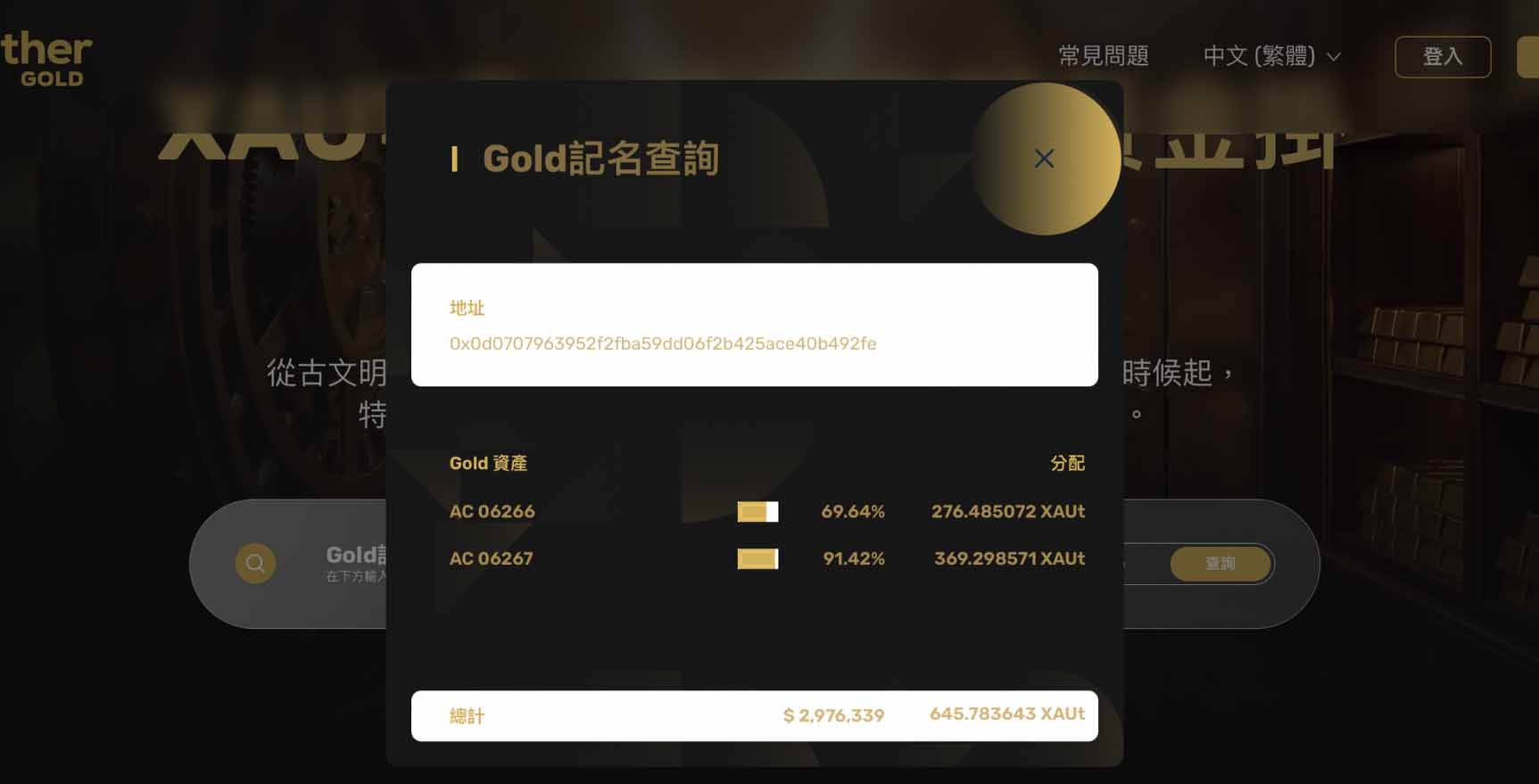 只要输入你的钱包地址(或者你持有的 XAUT 数量),系统就能直接帮你对应到「你是哪一根金条的一部分」。